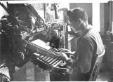 The New Canadian staffer Junji Ikeno on the linotype machine. 1944