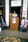 Roy Miki at podium at 'Writing the Wrong' event 1988