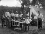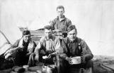 New Brunswick Provincial Archives - P148-24 / Four men holding tins of food; tents in background