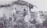 A Ukrainian pioneer and his wife plastering their Khata (house)