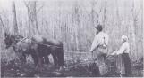 A pioneer couple breaking newly cleared land