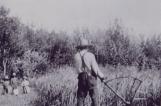 Cutting wheat with a cradle-scythe at Stuartburn, Manitoba.